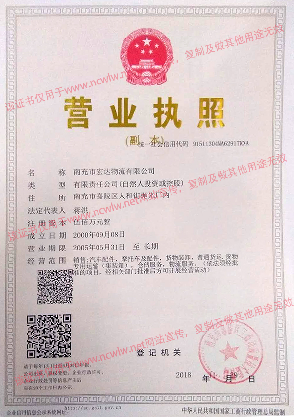 南充物流網(wǎng)(www.byalv.com) 南充市宏達物流有限公司營業(yè)執(zhí)照