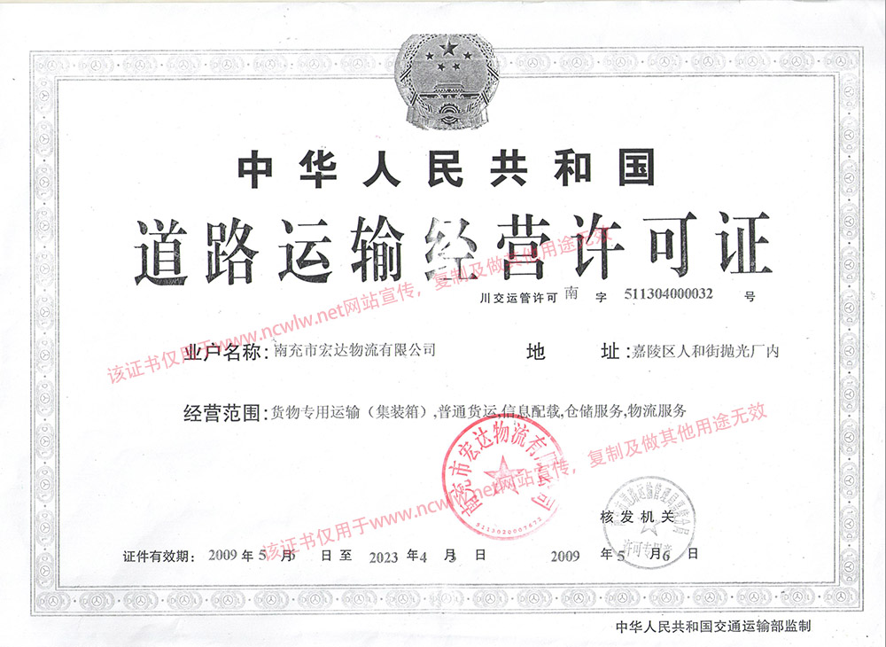 南充物流網(wǎng)(www.byalv.com) 南充市宏達物流有限公司道路運輸經(jīng)營許可證